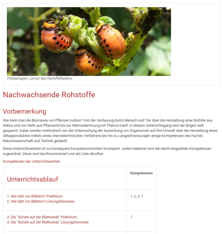 Unterrichtseinheit: Nachwachsende Rohstoffe (Biomasse)