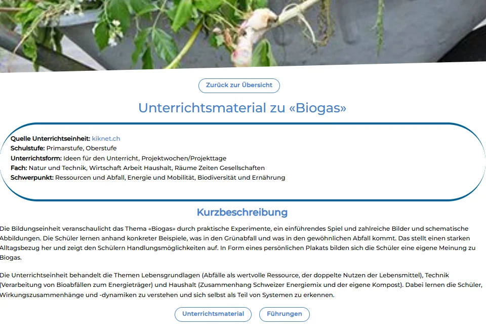 Start·Themen·Biogas und Biomasse· Unterrichtsmaterial