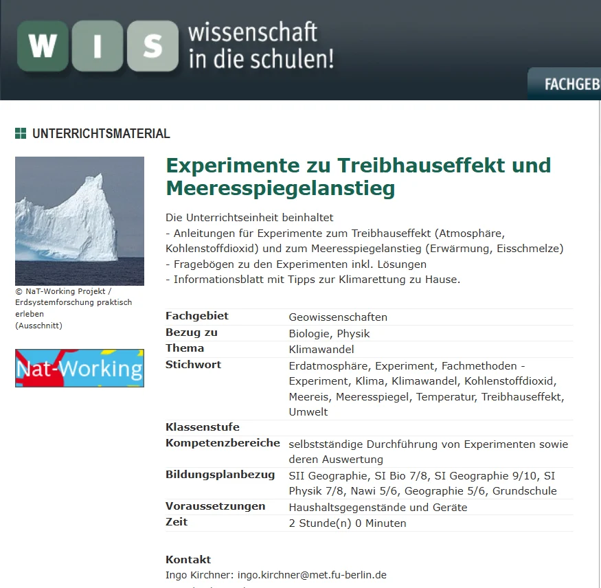 Experimente zum Klimawandel machen den Treibhauseffekt und den Meeresspiegelanstieg im Unterricht erlebbar. Die Unterrichtseinheit enthält Versuchsanleitungen, Arbeitsblätter mit Lösungen und praktische Klimaschutz-Tipps für den Alltag.