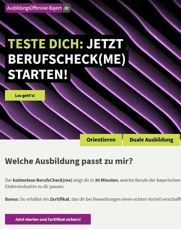 Internetplattform der Industrie- und Handelskammern (IHK) zu Angebot und Nachfrage auf dem Ausbildungsmarkt für Lehrberufe in Handel, Industrie und Dienstleistungseinrichtungen. Darüber hinaus bietet sie Unterstützung bei der Suche nach einem geeigneten Beruf anhand der Analyse persönlicher Stärken und Fähigkeiten.