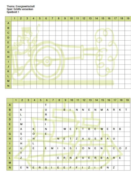 Das Gesellschaftsspiel „Schiffe versenken“ wird hier in Verbindung mit Fachinhalten zum Thema Stromversorgung gesetzt.