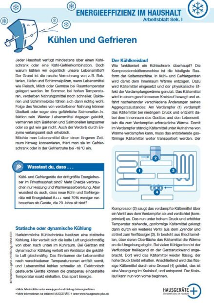 Die Unterrichtseinheit von „Handwerk macht Schule“ führt in den Aufbau und die Funktionsweise von Wärmepumpen und dabei auch auf ihre verschiedenen Arten (Sole-Wasser-, Wasser-Wasser- und Luft-Wasser-Wärmepumpe) in drei Teilen ein. Kreativ festigen die Schülerinnen und Schüler das Erlernte durch Neu-Vertonung eines Erklärfilms. Lehrkräften stehen hierzu drei Arbeitsblätter mit Lösungen zur Verfügung.