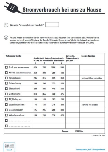 Arbeitsblatt: Strom im Alltag und effizienter Umgang