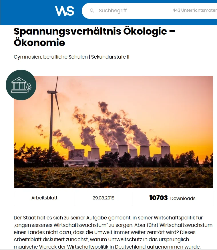 Der Staat hat es sich zu seiner Aufgabe gemacht, in seiner Wirtschaftspolitik für „angemessenes Wirtschaftswachstum“ zu sorgen. Aber führt Wirtschaftswachstum eines Landes nicht dazu, dass die Umwelt immer weiter zerstört wird? Das diskutiert dieses Arbeitsblatt.