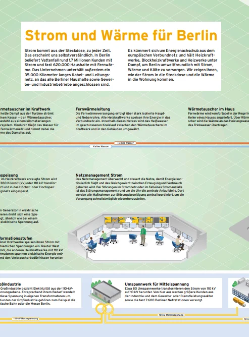Das Infoblatt des Versorgers Vattenfall zeigt dir, wie Strom und Wärme in Berlin vom Kraftwerk in die privaten Haushalte kommt.