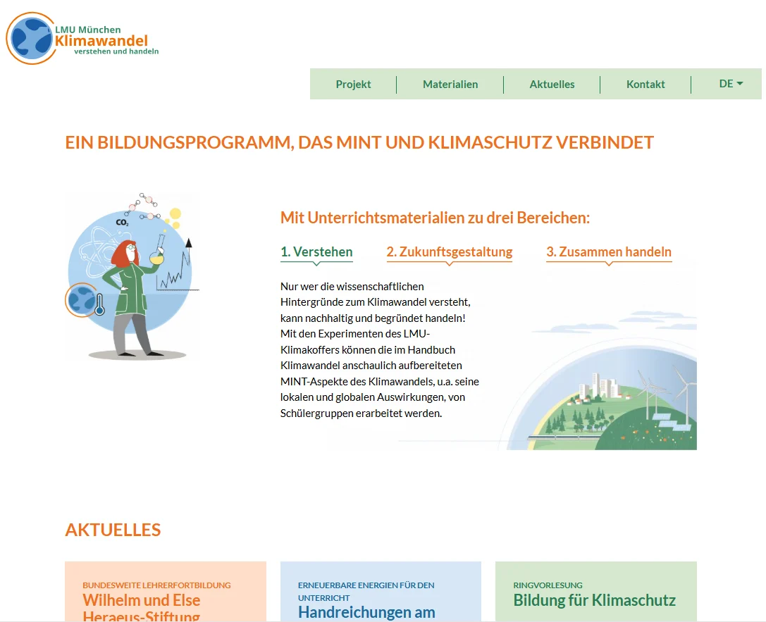 Nur wer die wissenschaftlichen Hintergründe zum Klimawandel versteht, kann nachhaltig und begründet handeln. Mit den Experimenten des von der Ludwig-Maximilians-Universität entwickelten Klimakoffers können die Aspekte des Klimawandels von Schülergruppen erarbeitet werden.