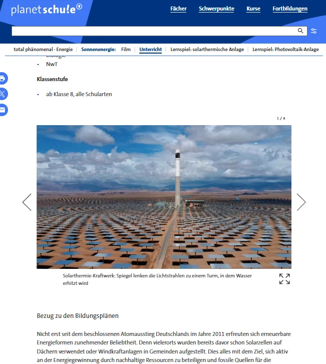 Unterrichtseinheit: Sonnenenergie (Planet Schule)