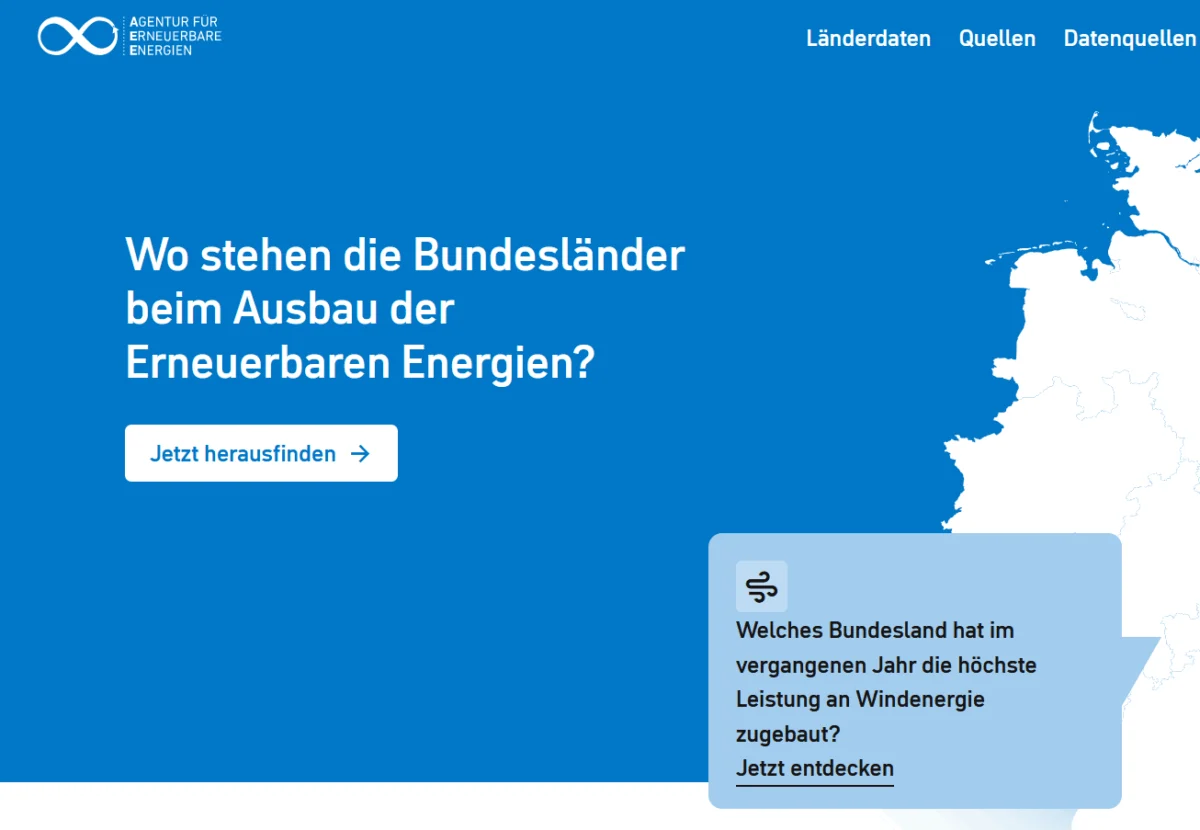 Das von der Agentur für Erneuerbare Energien betreute Portal „Föderal Erneuerbar“ umfasst mehr als 300 Datensätze zu Wind- und Sonnenenergie, Biomasse, Wasserkraft und Geothermie.