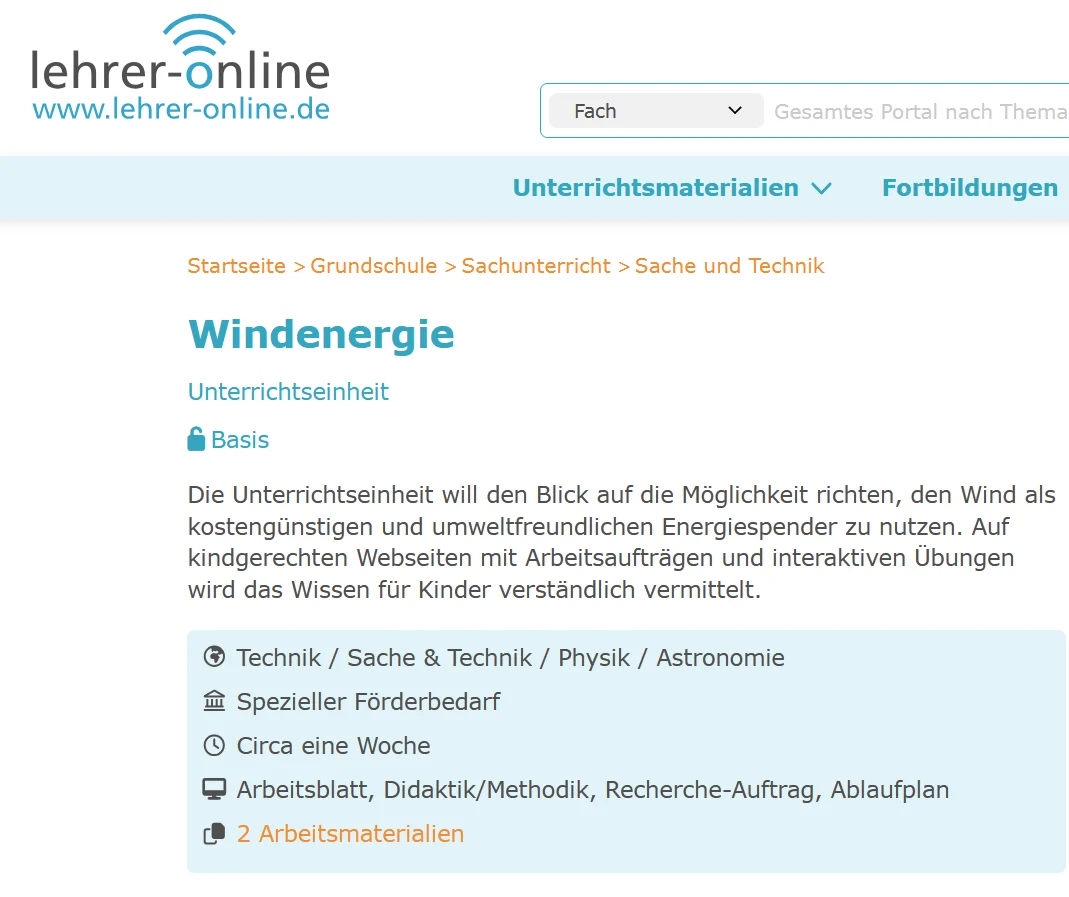 Die Unterrichtseinheit von Lehrer-Online will die Aufmerksamkeit auf die Potenziale lenken, die Windenergie als Energiespender bietet.